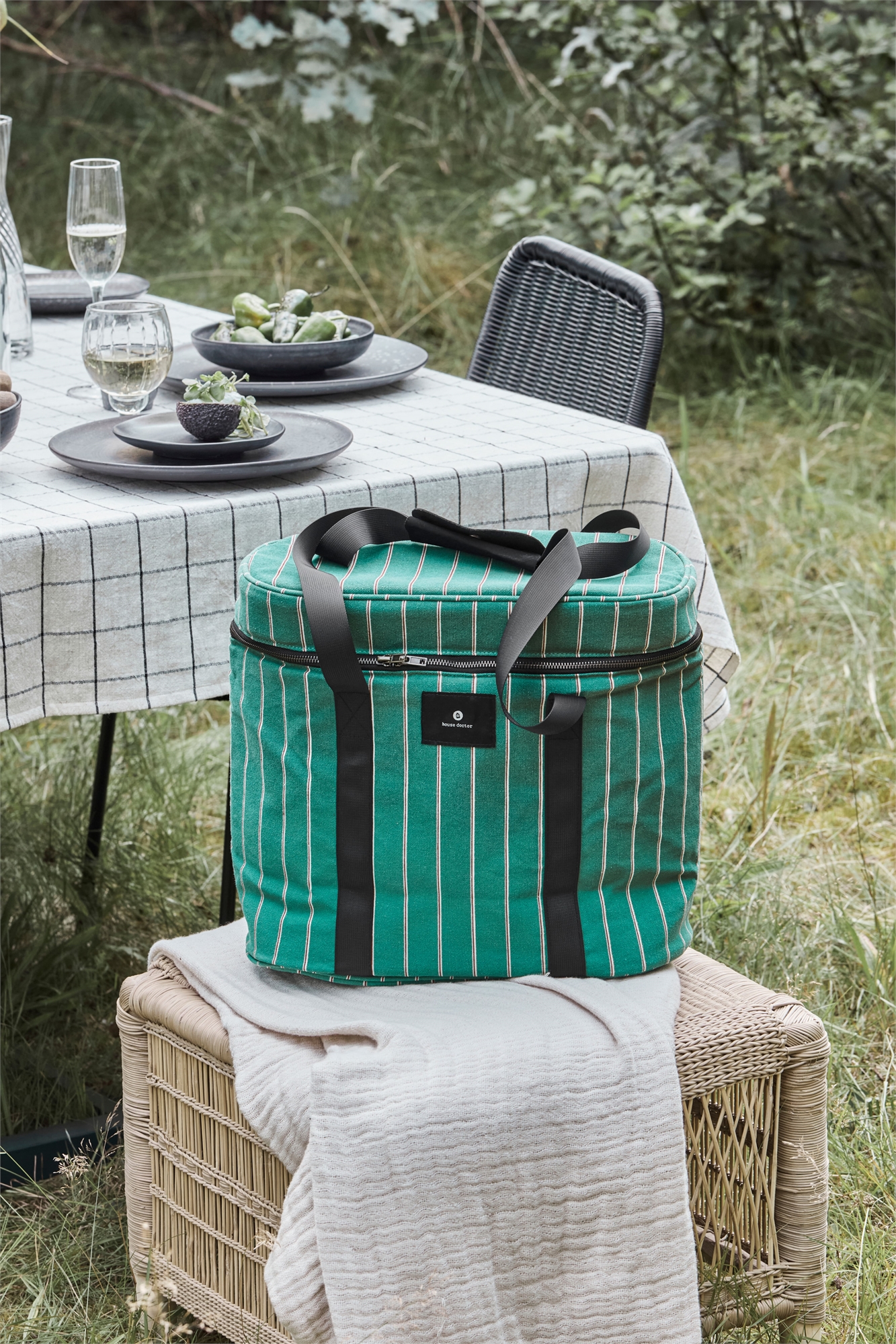 Придайте своему пикнику стильный вид с помощью этой элегантной сумки-холодильника. Сумка имеет яркий зеленый дизайн с узкими полосками белого и коричневого цветов. Термоизолированная подкладка сохранит ваши напитки прохладными, а прочные черные ремни облегчат переноску. Идеально подходит для дней в парке, на пляже или на пикнике в лесу.- Сохраняет напитки холодными в течение длительного времени.- Стильный полосатый узор зеленого цвета.- Практичен для путешествий.- Прочные, надежные ремни.Подготовьтесь к стильным пикникам с этим необходимым предметом! Д:38 см, Ш:19,5 см, В:35 см