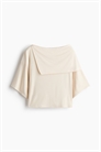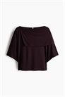 Короткий топ из эластичного вискозного джерси с лодочным вырезом, асимметричным слоем в стиле накидки в верхней части, заниженными плечами и короткими широкими рукавами.