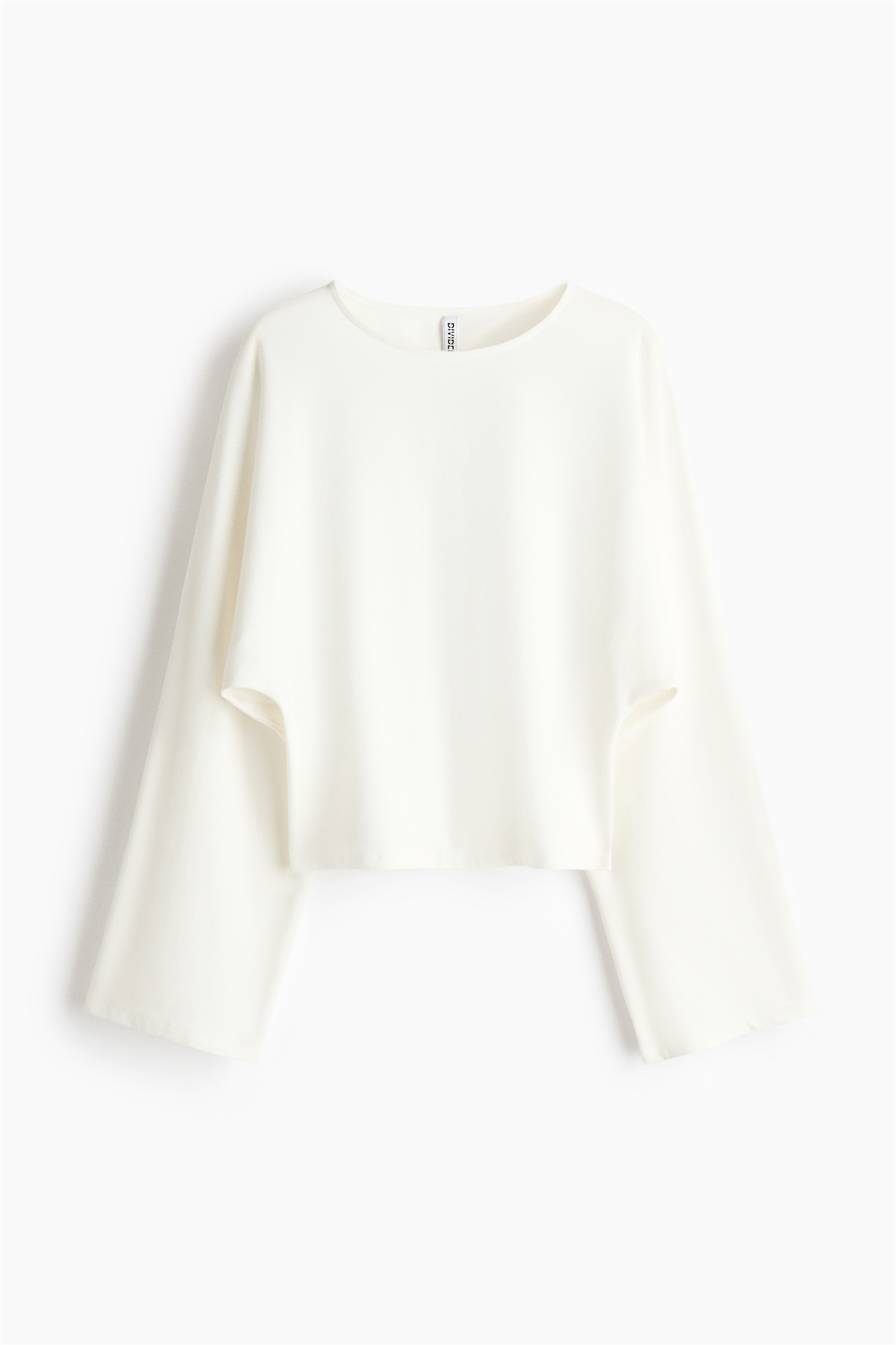 Топ из хлопкового джерси-стрейч с круглым вырезом и длинными широкими рукавами "летучая мышь".
