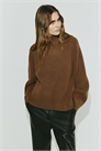 Джемпер оверсайз из мягкого трикотажа в рубчик с черепаховой горловиной с разрезом сзади и длинными рукавами-седлами с соединенными швами.