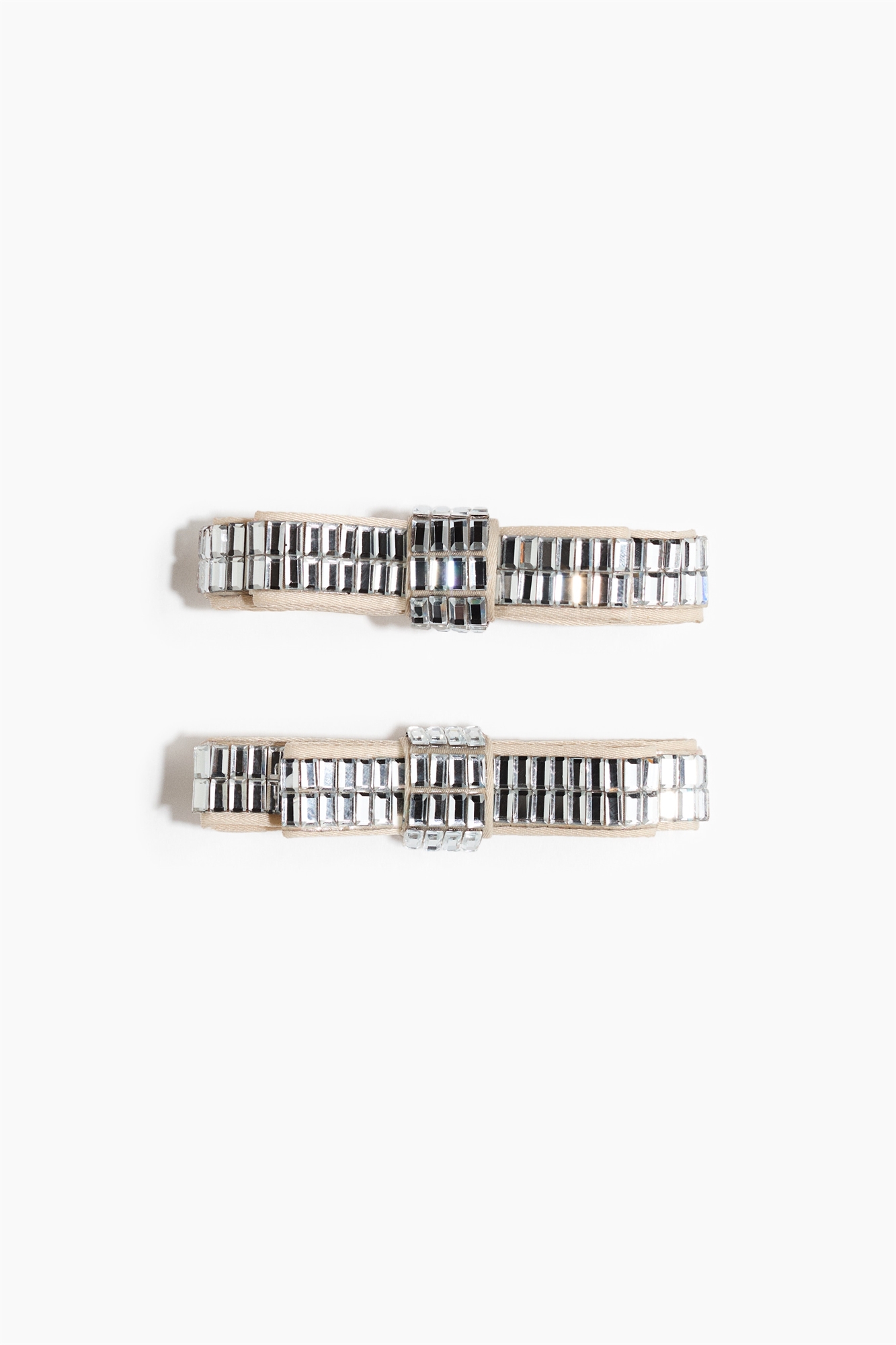 Заколки для волос в форме банта украшены сверкающими стеклянными стразами.