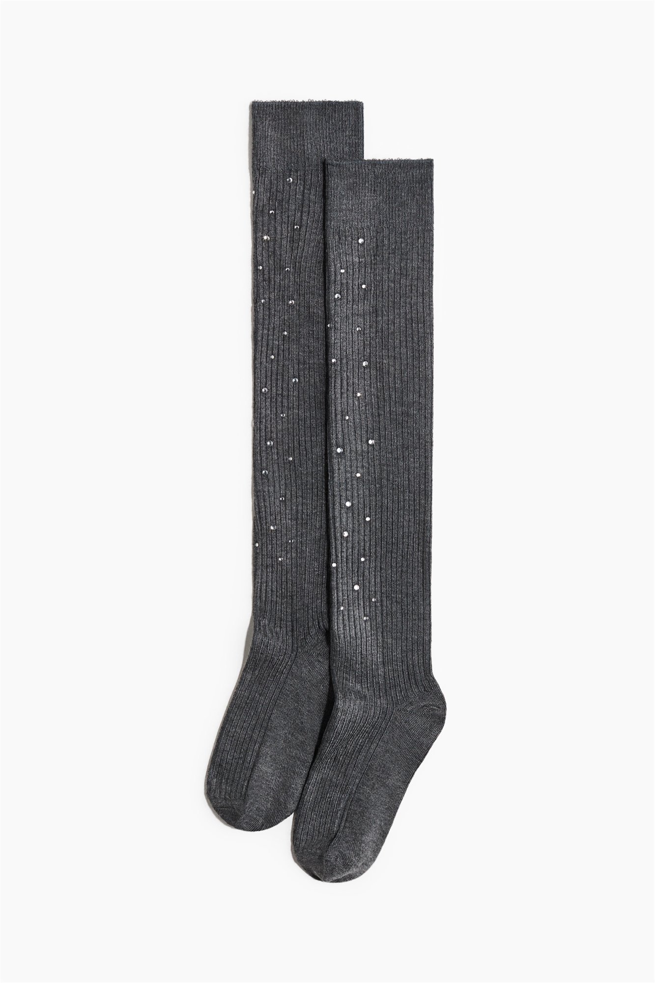 Носки до колена из мягкого трикотажа в рубчик с украшениями из страз.