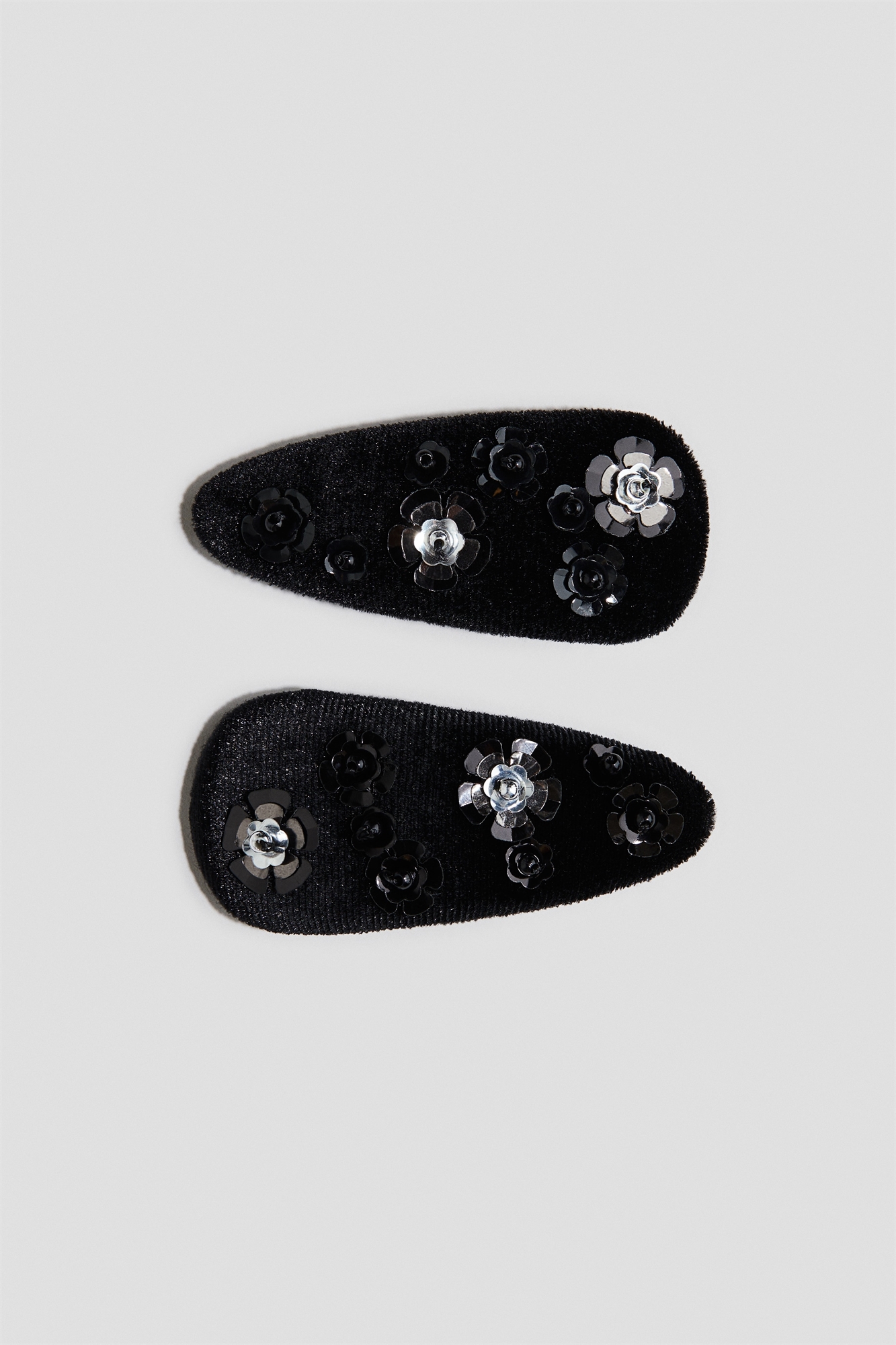 Металлические заколки для волос с тканевой отделкой и украшениями.