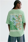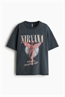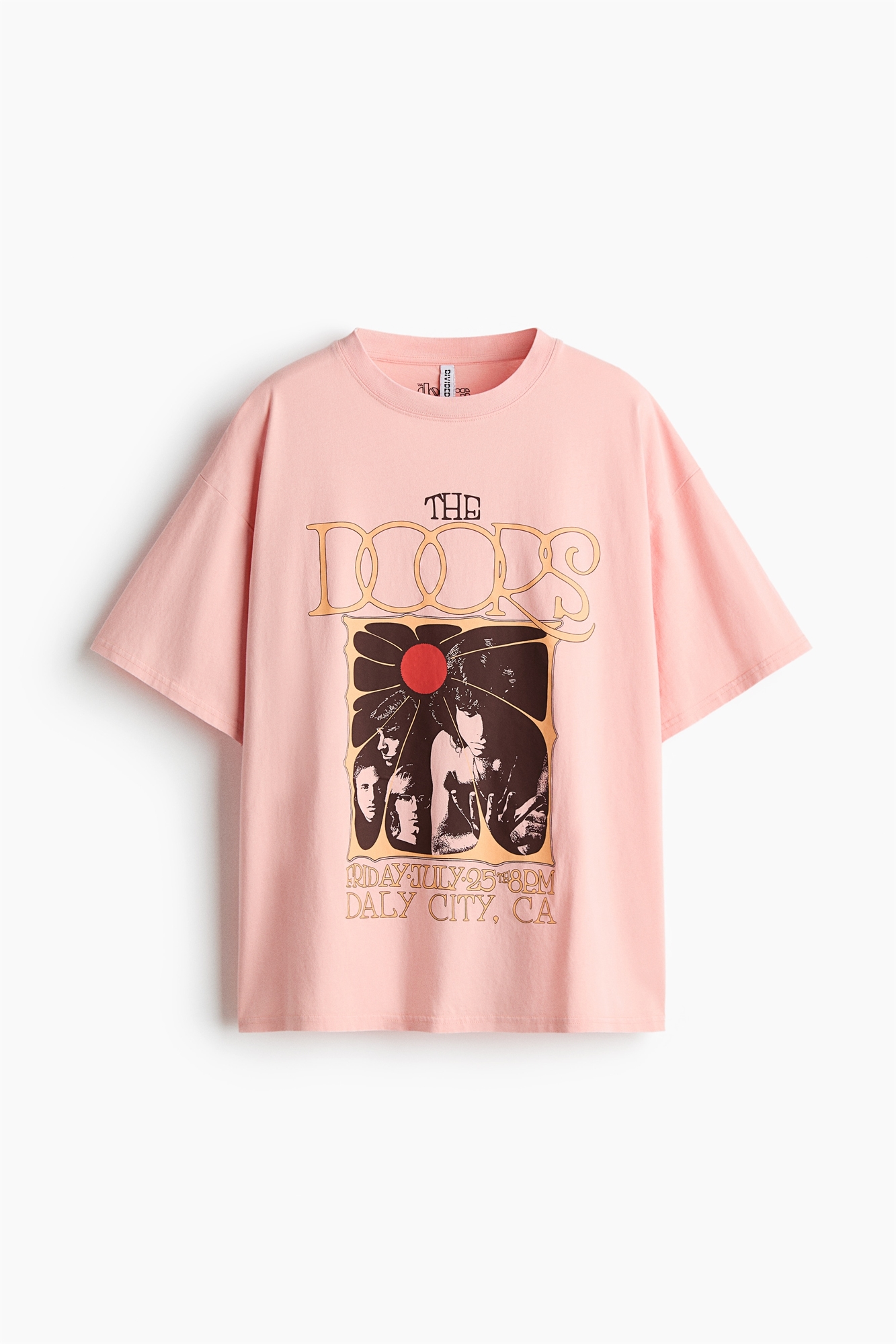 Футболка оверсайз из хлопкового джерси с принтом. Круглый вырез с ребристой отделкой и спущенные плечи.