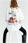 Оверсайз-футболка из мягкого хлопкового джерси с принтом на груди. Круглый вырез с ребристой отделкой, заниженные плечи и прямой подол.