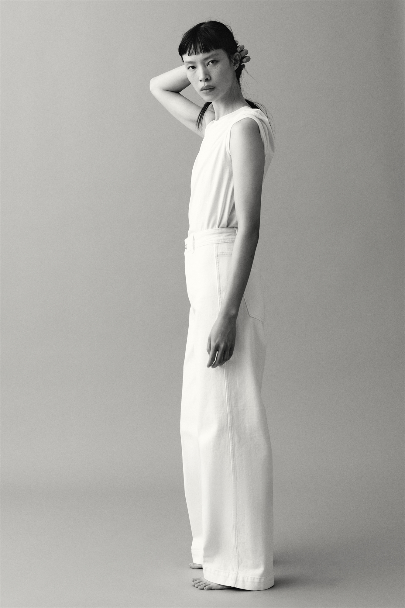 Джинсы из хлопкового денима с легким стретчем для комфорта. Широкие джинсы с обычной посадкой от талии до бедер и широким кроем от бедер до подола. Высокая талия с ширинкой на молнии и пуговице. Накладные задние карманы и складки спереди и сзади. Регулярная длина, рассчитанная на то, чтобы доходить до верхней части стопы с минимальной или нулевой укладкой. Эффектно смотрятся независимо от того, как вы их носите.