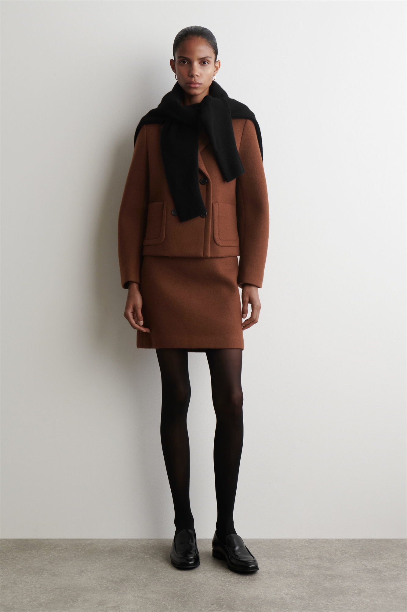 Заимствовав силуэты 80-х годов, эта мини-юбка А-линии сшита из шерсти с верхним швом, обрамляющим одну сторону. Она выполнена в насыщенном шоколадном цвете, который сочетается с подходящим блейзером для создания приталенного образа. Regular fitЗастежка на молниюЭто изделие содержит шерстяное волокно Responsible Wool Standard TE-00047206 (RWS) с ферм, сертифицированных в соответствии с требованиями к благополучию животных и землепользованию Состав: 59% шерсть RWS, 19% хлопок, 12% TENCEL™ модал, 10% полиуретан. Без учета отделки / Сухая чистка Длина по спинке для размера EU 36 составляет 40,3 см / Модель носит размер EU 36
