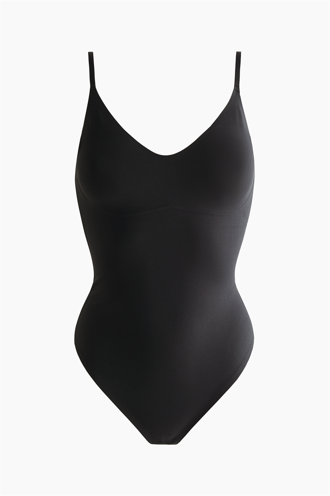 Бесшовное боди стринги из микрофибры с легким формирующим эффектом на талии. Регулируемые бретели, вшитые чашечки, придающие бюсту естественную форму и обеспечивающие легкую поддержку, и ластовица с потайными кнопками. Подогнутые, проклеенные края обеспечивают бесшовное, комфортное ощущение на коже и минимальную видимость под одеждой.