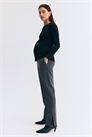 Облегающие брюки из саржи с диагональными боковыми карманами и втачными задними карманами. Эластичная резинка сзади на талии, фальшивая ширинка и широкая панель из джерси на талии для лучшей посадки на животе. Удлиненные ноги со складками спереди и сзади и разрезом на подоле.