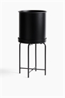 Металлический горшок с дренажным отверстием в дне и высокая подставка для растений с поддоном. Размеры горшка: диаметр 21,2 см, высота 23 см. Размеры подставки для растений: диаметр 22,2 см, высота 30 см.