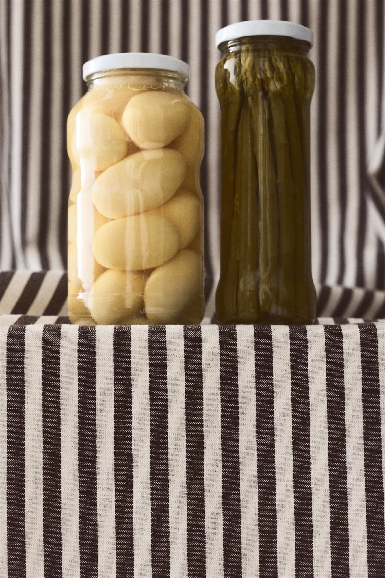 Классическая скатерть с узорчатым переплетением из смеси льна и хлопка.