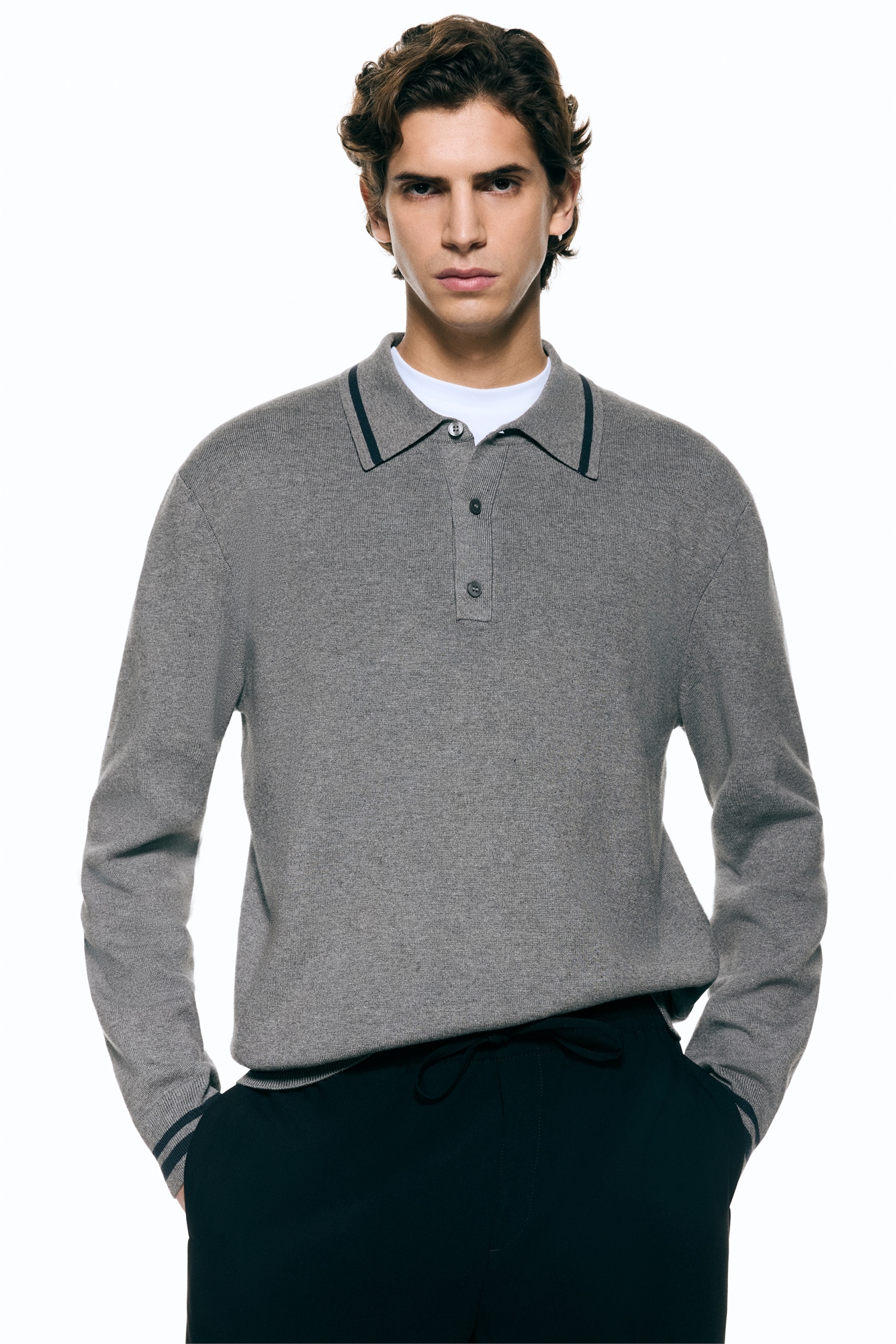 Рубашка-поло с длинными рукавами из мягкого тонкого трикотажа с воротником, застежкой на пуговицы и широкой ребристой отделкой на манжетах и подоле. Свободный крой для непринужденного, но не чрезмерного силуэта.