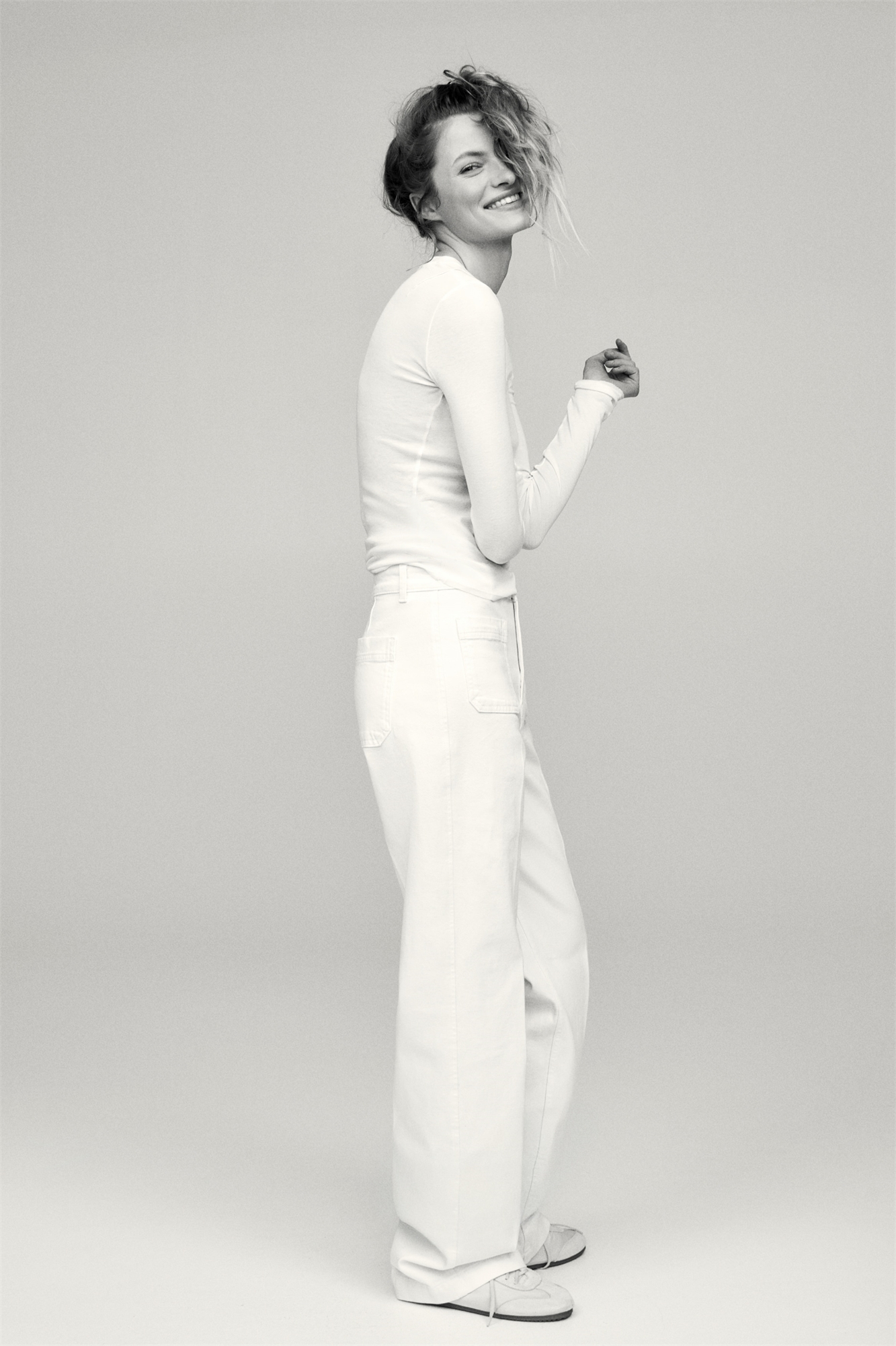 Джинсы из хлопкового денима с легким стретчем для комфорта. Широкие штанины с обычной посадкой от талии до бедер и широким разрезом от бедра до подола. Высокая талия, застежка на молнию и пуговицу, накладные карманы спереди и сзади, складки спереди и сзади. Регулярная длина, рассчитанная на то, чтобы доходить до верхней части стопы с минимальной или нулевой укладкой. Непринужденная посадка, независимо от того, как вы их носите.