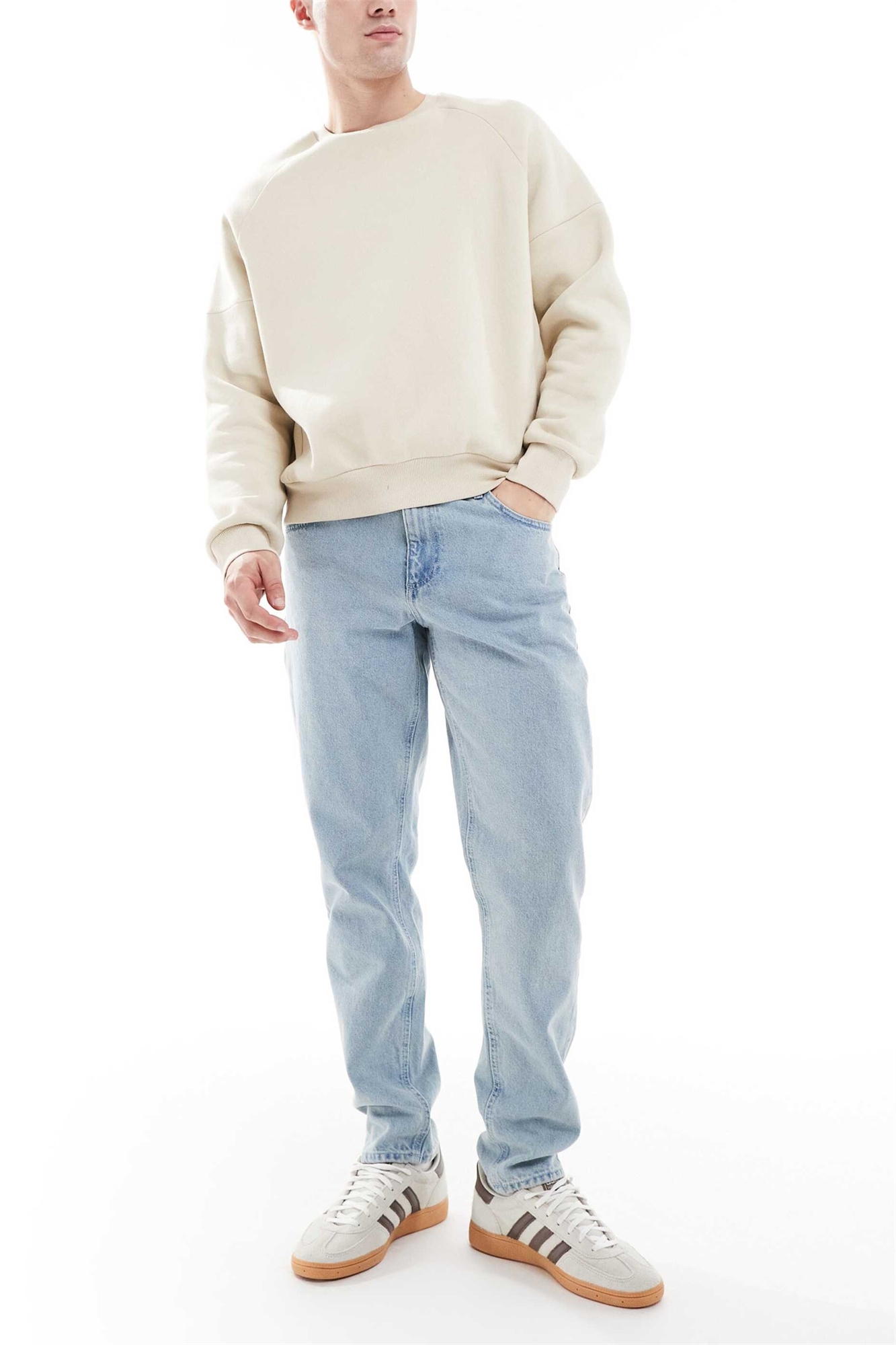 Джинсовая ткань средней плотности, неэластичная: светло-голубой оттенок Основной материал: 100% хлопок.