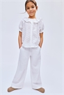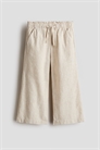 Брюки свободного кроя из льна и хлопка с эластичным поясом на шнурке и небольшой оборкой. Диагональные боковые карманы и широкие брючины.