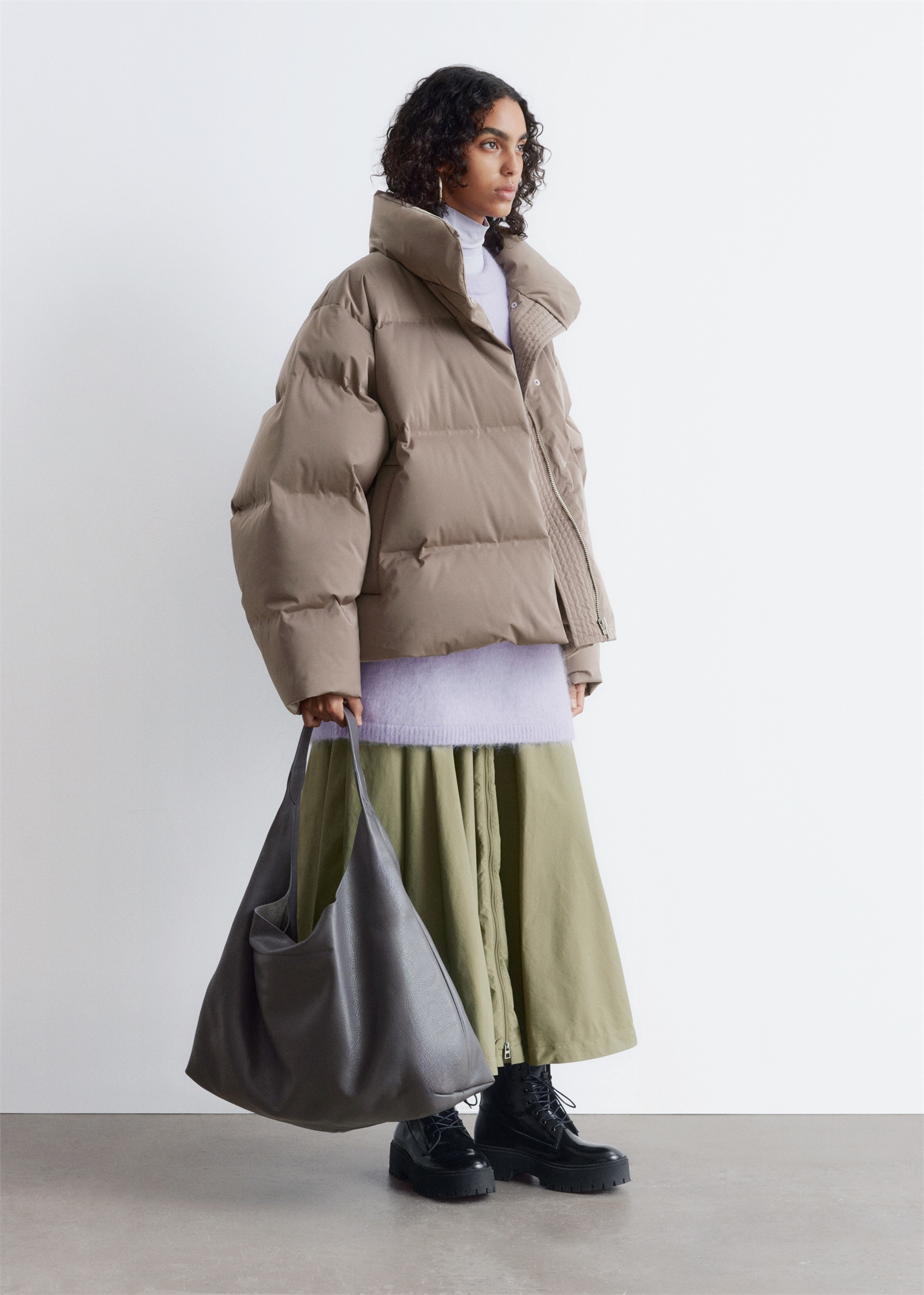 Эта стеганая куртка на подкладке из пуховых перьев с водоотталкивающим покрытием. Она имеет силуэт "кокон", воротник-стойку и отворачивающуюся переднюю часть с потайной застежкой-молнией и кнопками. Модель дополнена эластичным шнурком на подоле и косыми карманами. Полностью на подкладке Длина куртки: 64 см (размер S)