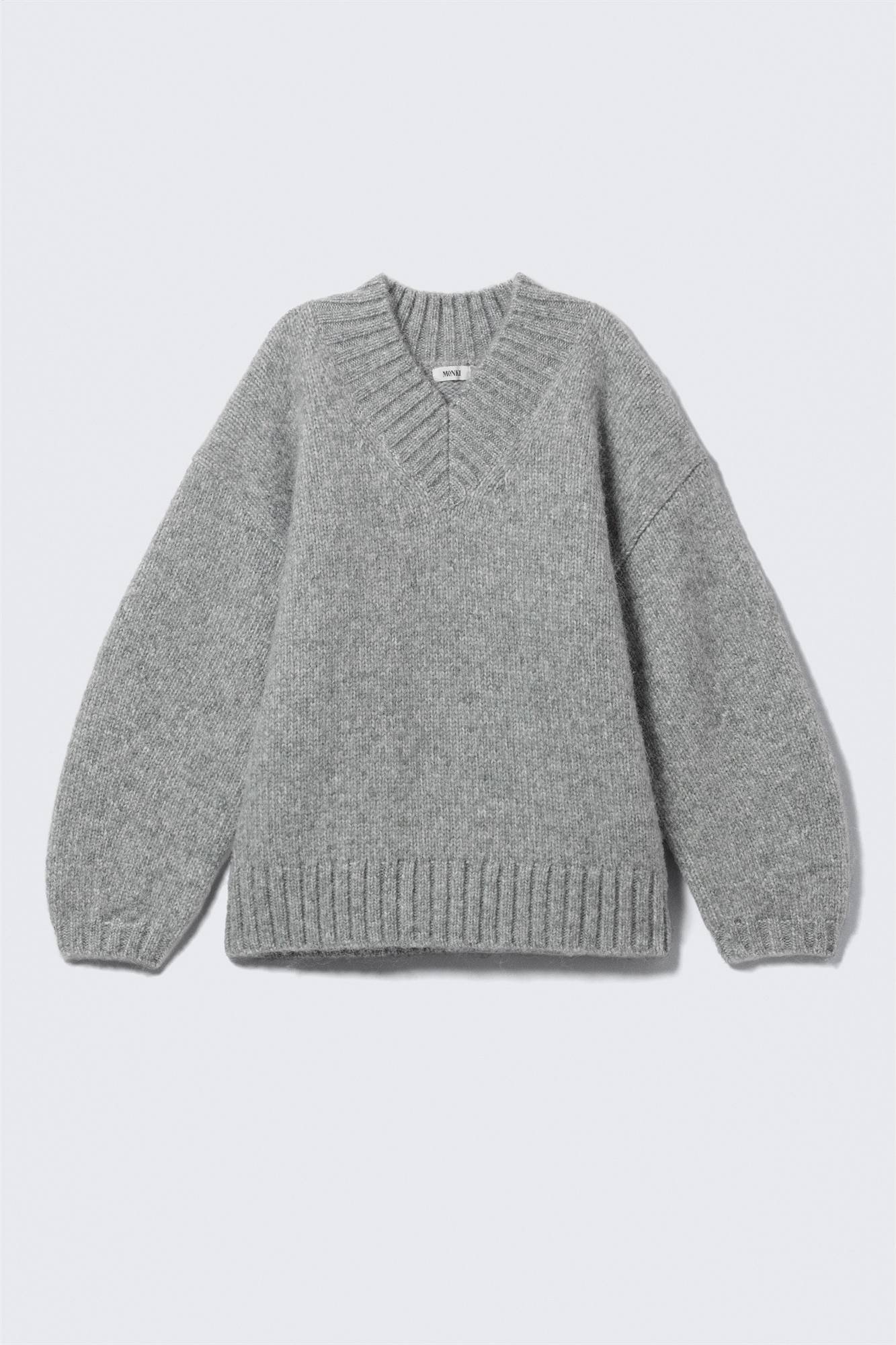 Вязаный свитер с V-образным вырезом в стиле оверсайз