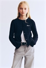 Кардиган из мягкого хлопка кабельной вязки с небольшой вышитой деталью спереди. Круглый вырез с ребристой отделкой, пуговицы спереди, длинные рукава, манжеты и подол в рубчик.