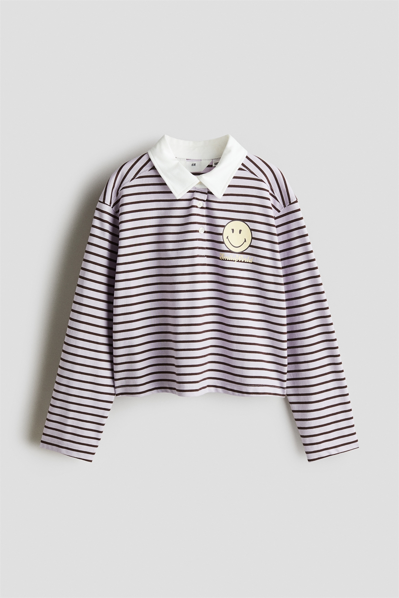 Рубашка для регби больших размеров из мягкого хлопкового джерси с принтом спереди. Отложной воротник, застежка на пуговицах, спущенные плечи и длинные рукава.