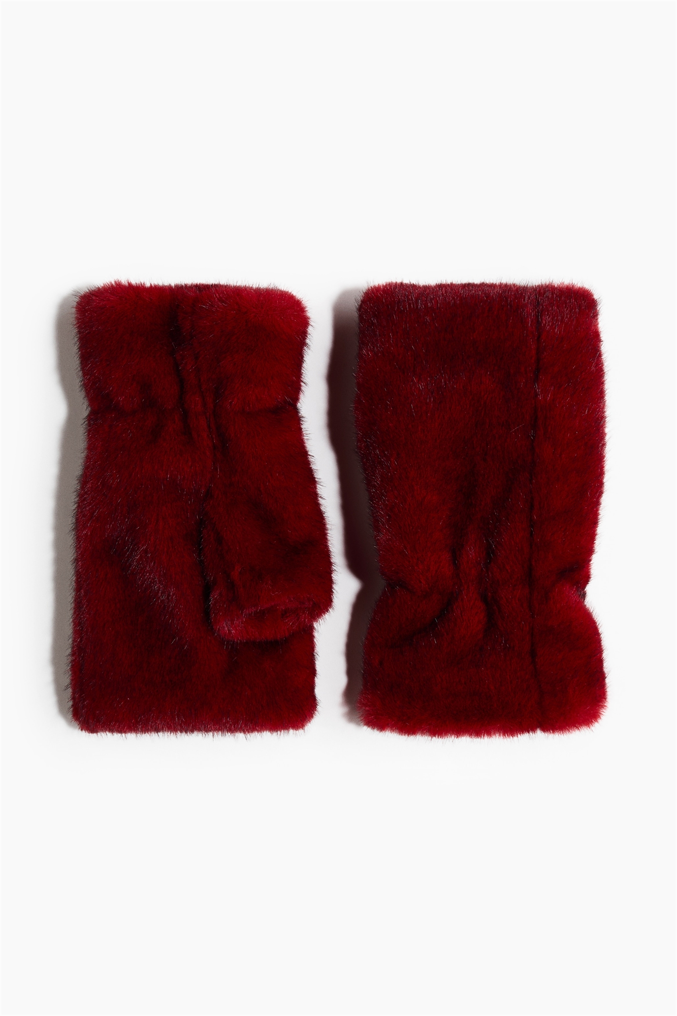 Перчатки без пальцев из пушистой ткани с отверстиями для больших пальцев и узкой эластичной резинкой вокруг запястий. На подкладке.