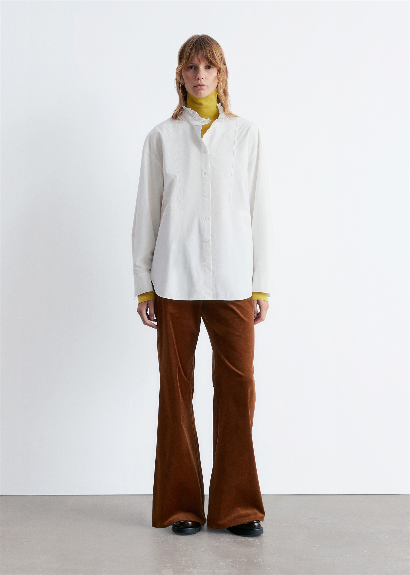 Хлопковая рубашка с длинным воротником-стойкой
