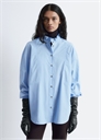 Эта рубашка изготовлена из стопроцентного хлопкового поплина, обеспечивающего хрустящую легкость. Она имеет длинный свободный силуэт, воротник-стойку с оборкой, декоративные швы по линии разреза и закругленный подол. Застежка на пуговицах и манжеты на пуговицах. Длина рубашки: 78,5 см / 30,9" (размер S)