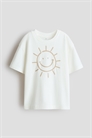 Футболка из мягкого хлопкового джерси с принтом на груди. Круглый вырез с ребристой отделкой и заниженные плечи.
