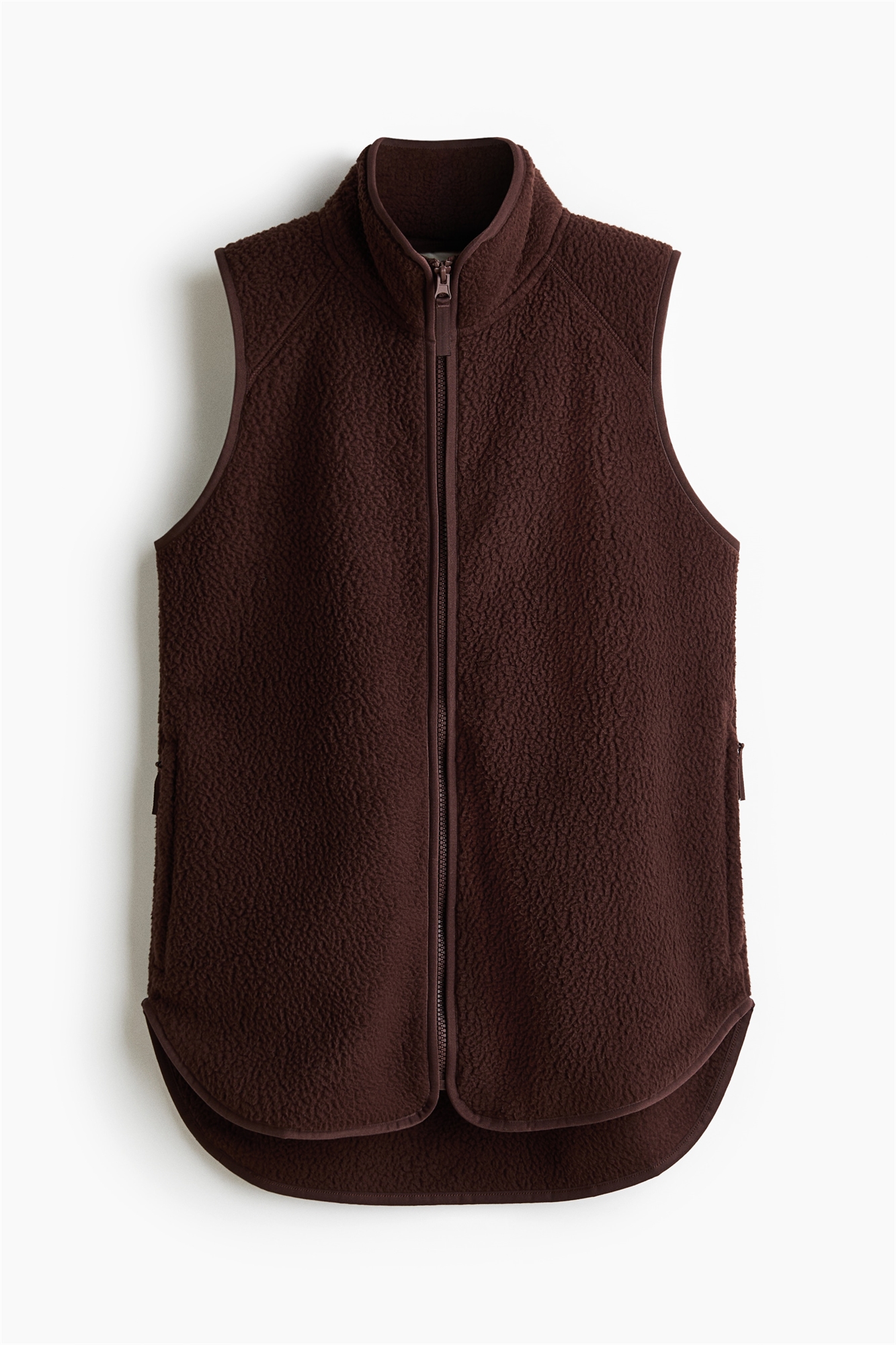 Спортивная жилетка из мягкого, согревающего тедди с эластичной вязкой. Регулярный крой с высоким воротником, застежка-молния спереди, боковые карманы на молнии и закругленный подол, удлиненный сзади. Без подкладки.