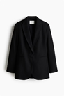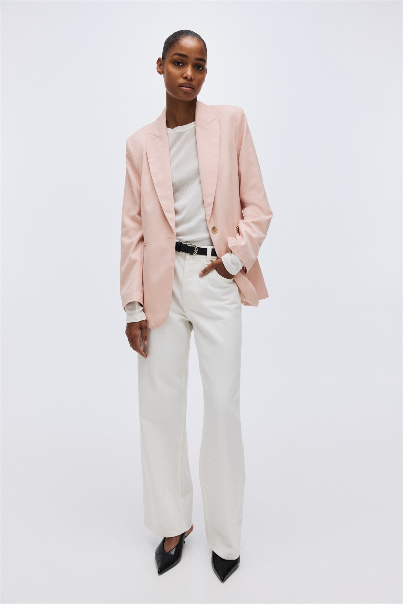 Однобортный блейзер из тканого материала с пикообразными лацканами, застежкой на пуговицу спереди и втачными передними карманами. Плечевые накладки, длинные рукава с манжетами на пуговицах и одна задняя отдушина. На подкладке.