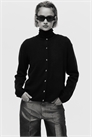 Кардиган из мягкого тонкого трикотажа с добавлением шерсти с круглым вырезом и металлическими пуговицами спереди. Узкая тесьма по вырезу, манжетам и подолу.