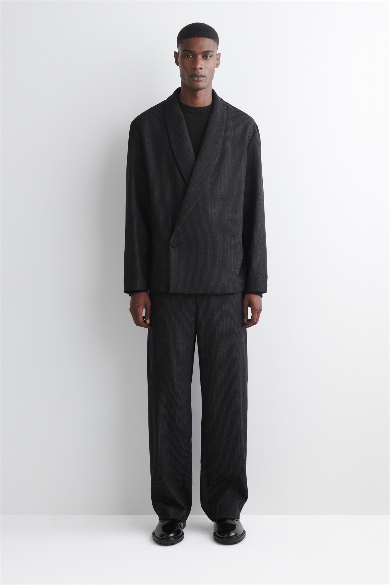Эти брюки в полоску, созданные из первоклассной итальянской шерсти, имеют зауженный к низу крой, который не мешает носить обувь. Подойдите к ним как к костюму, добавив подходящий блейзер. Свободный кройЗастежка на крючок, планку и молниюПереработанная шерсть изготавливается из отходов прядильного производства, остатков пряжи, отходов производства и одежды после потребления – создавая новые вещи без отходов Материал: 60% переработанной шерсти, 33% переработанного полиэстера, 7% полиамида (нейлона). Подкладка карманов: 100% хлопок. Без учета отделки / Сухая чистка Внутренняя длина штанины размера EU 48 составляет 76 см / Модель носит размер EU 48