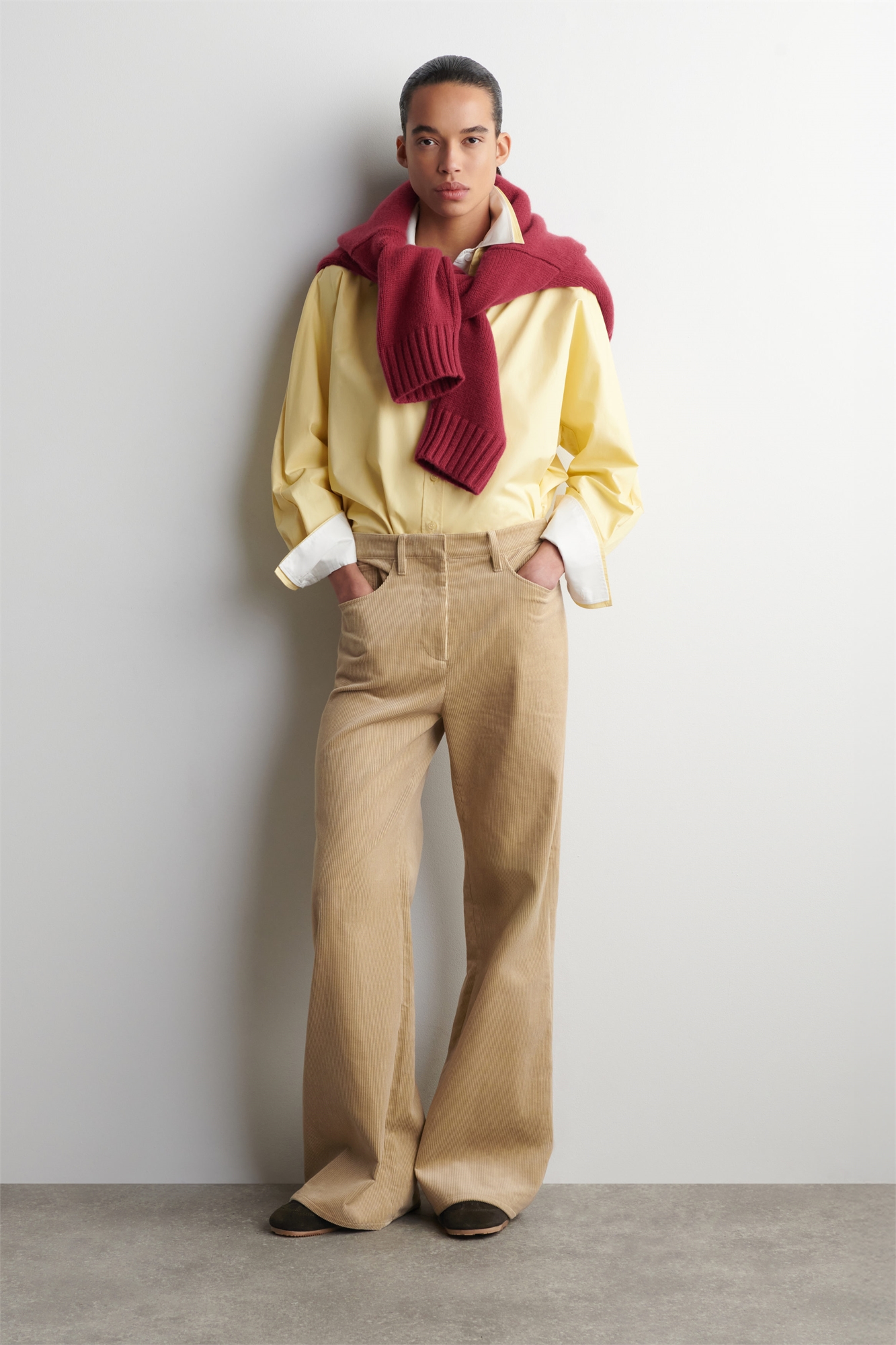 Этой осенью/зимой гардеробные классические вещи обретают новое измерение благодаря богатой текстуре. Эти брюки, сшитые из приятного на ощупь хлопкового вельвета, представлены в нейтральном камельном оттенке и имеют шлевки для ремня, пять карманов и прямой крой. Сочетайте их с трикотажем в тон.Регулярный крой. Застежка на крючок, шнурок и молнию. Верх: 100% хлопок. Без отделки. Машинная стирка. Длина по внутреннему шву для размера EU 36 составляет 77,7 см. На модели одета одежда размера EU 36.