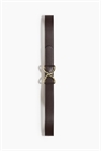 Узкий ремень с металлической пряжкой.