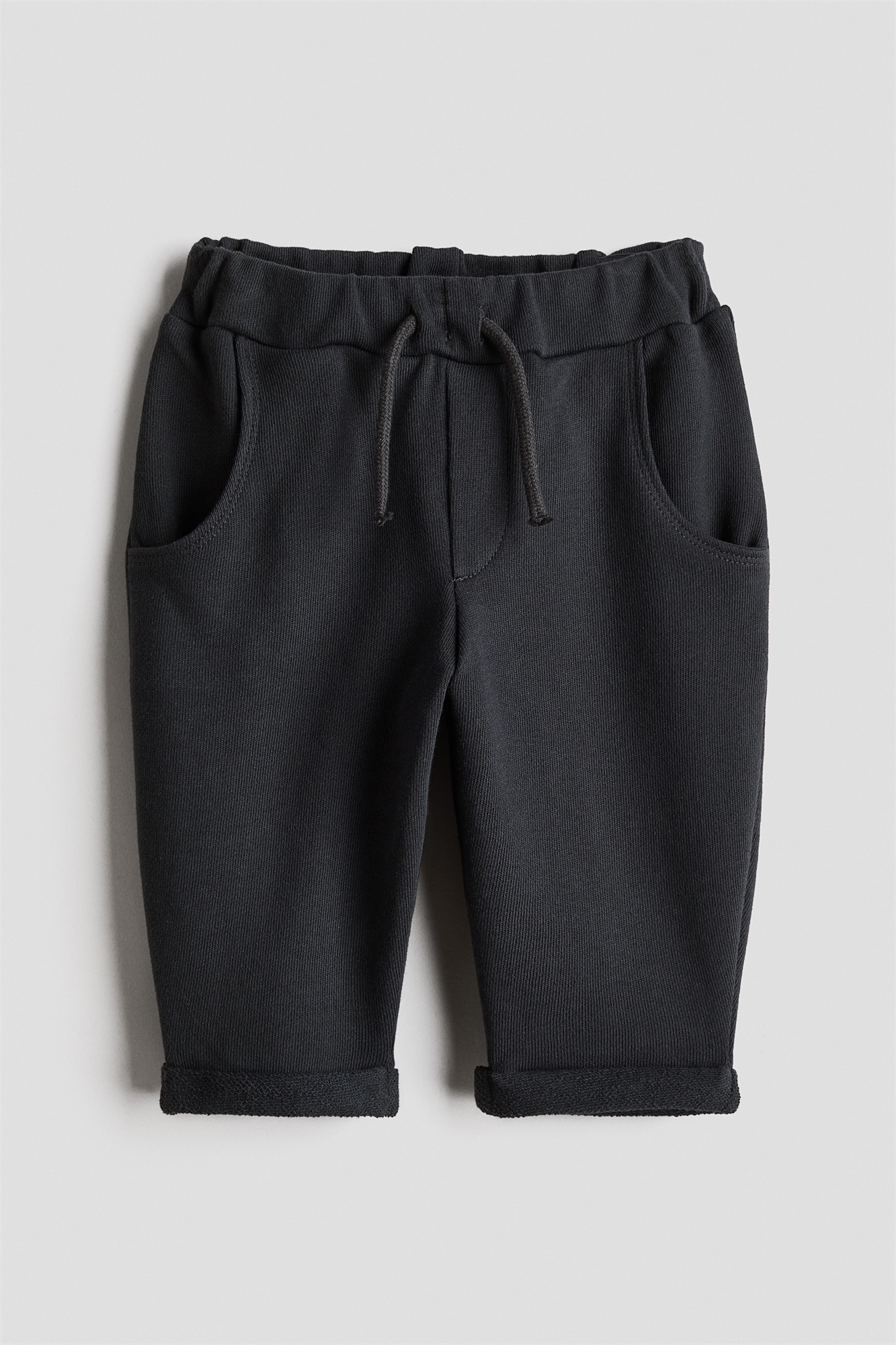 Джоггеры из легкой толстовочной ткани с регулируемым эластичным поясом с декоративным шнурком и фальшивой ширинкой. Боковые карманы и вшитые подвороты по краям.