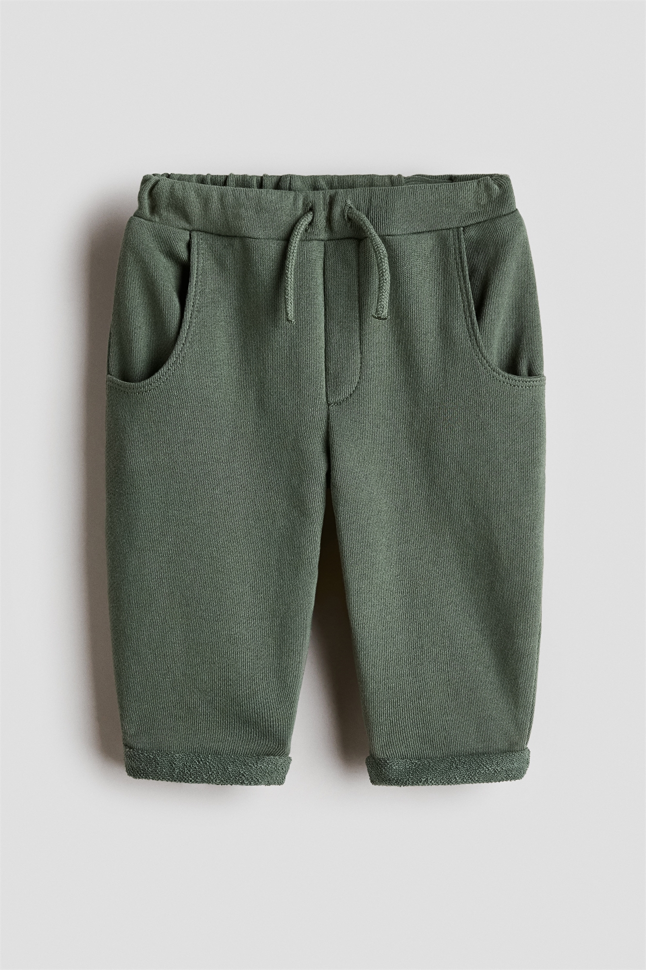 Джоггеры из легкого футера с регулируемым эластичным поясом с декоративным шнурком и фальшивой ширинкой. Боковые карманы и вшитые подвороты по краям.