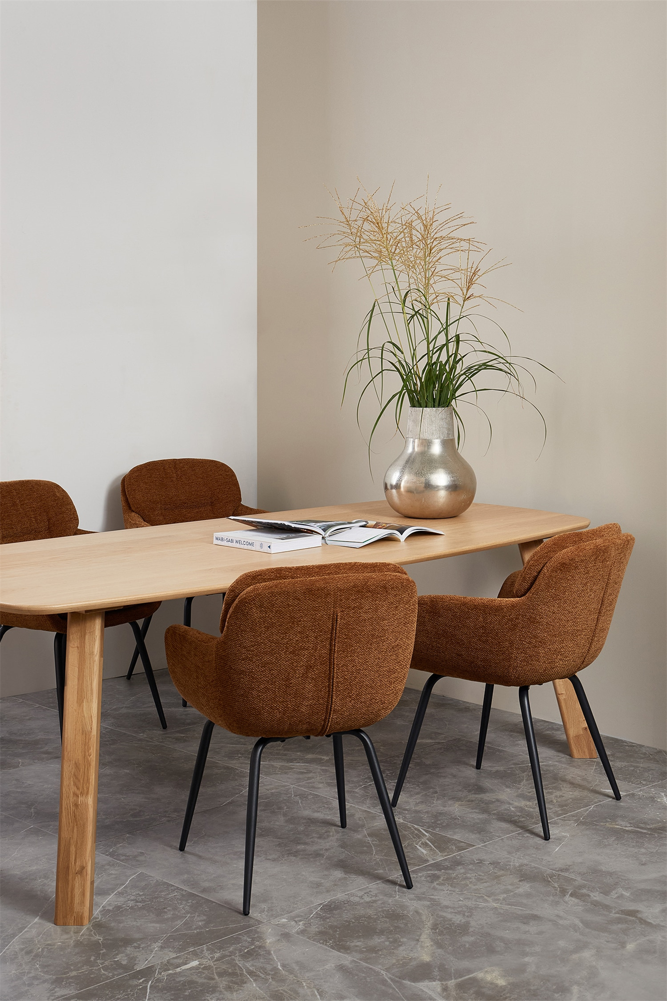 Обеденный стул Runa от WOOOD сочетает в себе комфорт и стиль. Он обит шенилловой тканью и имеет элегантный черный металлический каркас. Округлый дизайн и слегка блестящая ткань делают его по-настоящему привлекательным. Ткань Sky chenille, изготовленная из 100% полиэстера, имеет рейтинг Мартиндейла 25 000, что делает ее износостойкой и легкой в уходе. Светлые тона придают креслу дополнительную глубину. Размеры: Высота 82 см, ширина 57 см, глубина 59 см, высота сиденья 48 см, ширина сиденья 39-45 см, глубина сиденья 41 см, высота подлокотника 18 см, высота спинки 38 см, высота ножек 40,5 см. Вес: 7,3 кг.