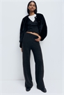 Облегающие брюки из мягкого трикотажа с высокой талией и эластичным поясом в рубчик. Прямые ноги с узкой тесьмой по подолу.