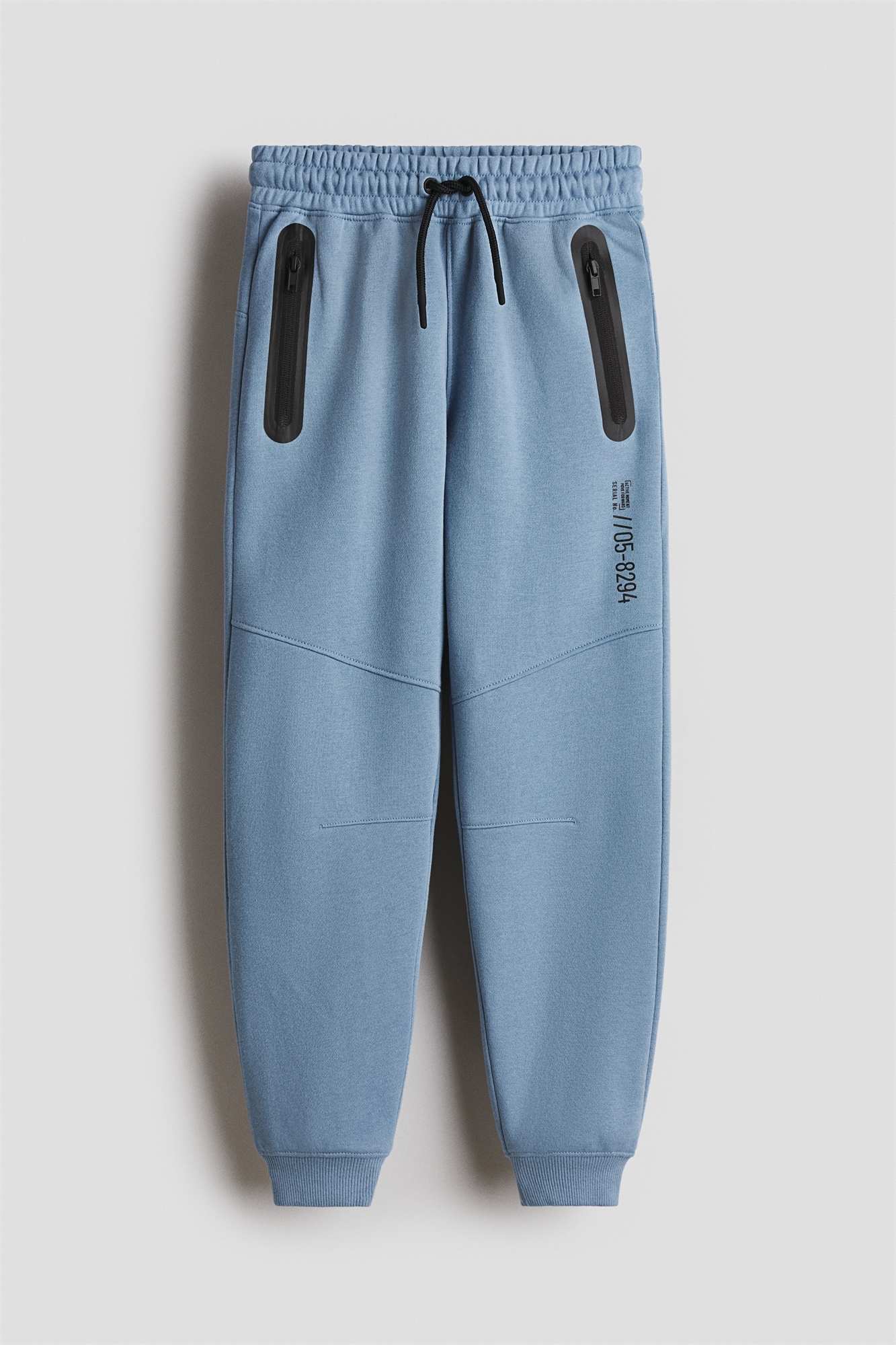 Джоггеры из футера с мягкой начесом внутри и небольшим принтом спереди. Эластичная талия с утягивающим шнурком, ушко сзади и боковые карманы на молнии с ленточными деталями. Слегка зауженные ноги и окантовка в рубчик.