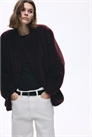 Свободный жакет из мягкого тедди с переплетами из ткани с покрытием. Круглый вырез, застежка на пуговицы спереди и неброские боковые карманы. Спущенные плечи и длинные рукава. На подкладке.