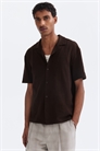 Рубашка с короткими рукавами из жаккардового джерси из смесовой хлопковой ткани с воротником-стойкой, французским передом и прямым подолом. Классический крой для комфортной носки и классического силуэта.