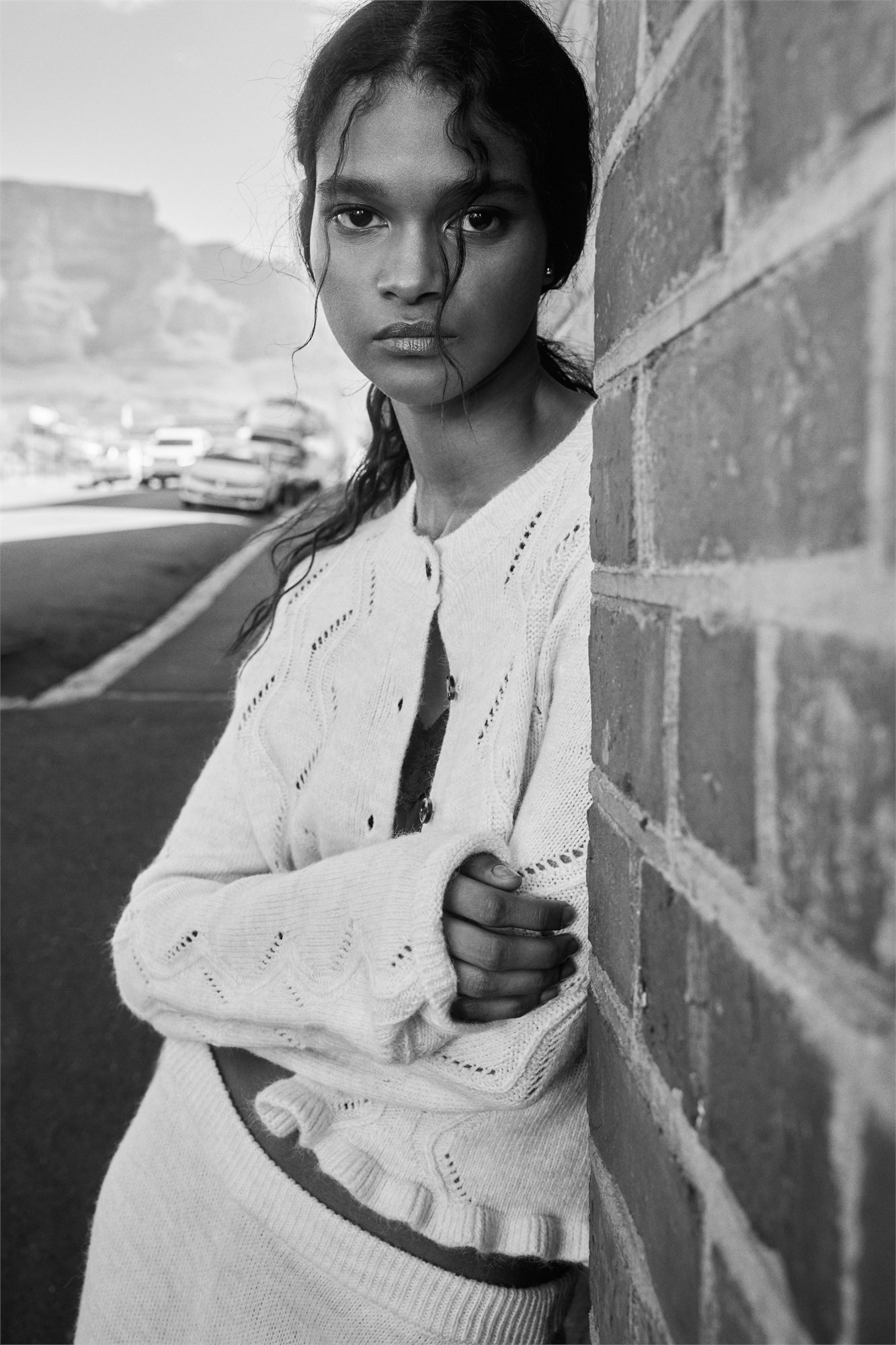 Приталенный кардиган из мягкого трикотажа с отделкой пуантелье. Круглый ребристый вырез, пуговицы спереди, узкие манжеты в рубчик и оборка по подолу.