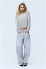 Джемпер с открытыми плечами из мягкого трикотажа с вставками из шерсти. Опущенные плечи, длинные рукава и резинка в верхней части, на манжетах и по низу.