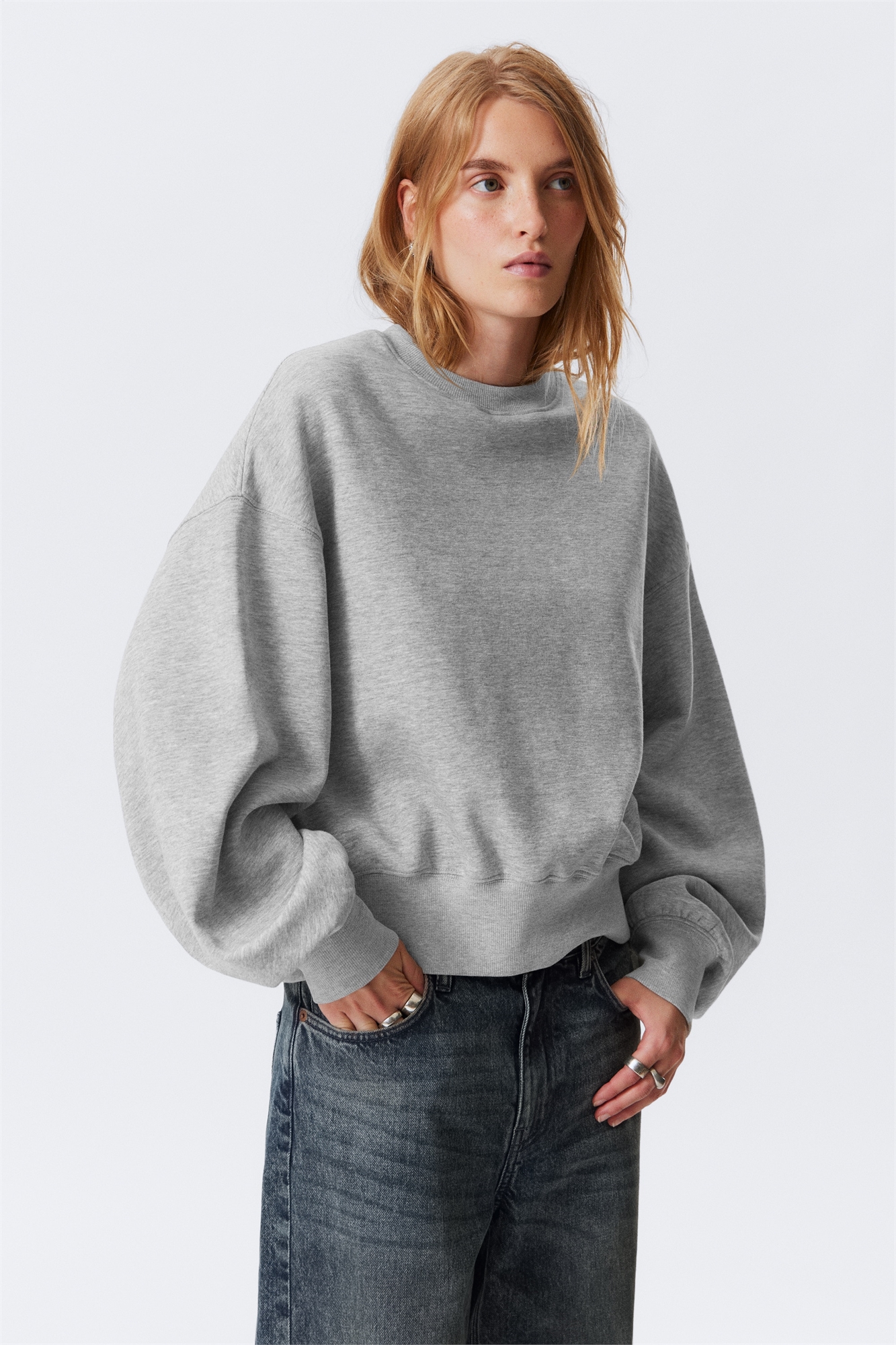Толстовка из мягкого хлопкового флиса, выполненная в стиле оверсайз. Вырез горловины, спущенные плечи, просторные рукава и ребристая отделка горловины, манжет и подола.