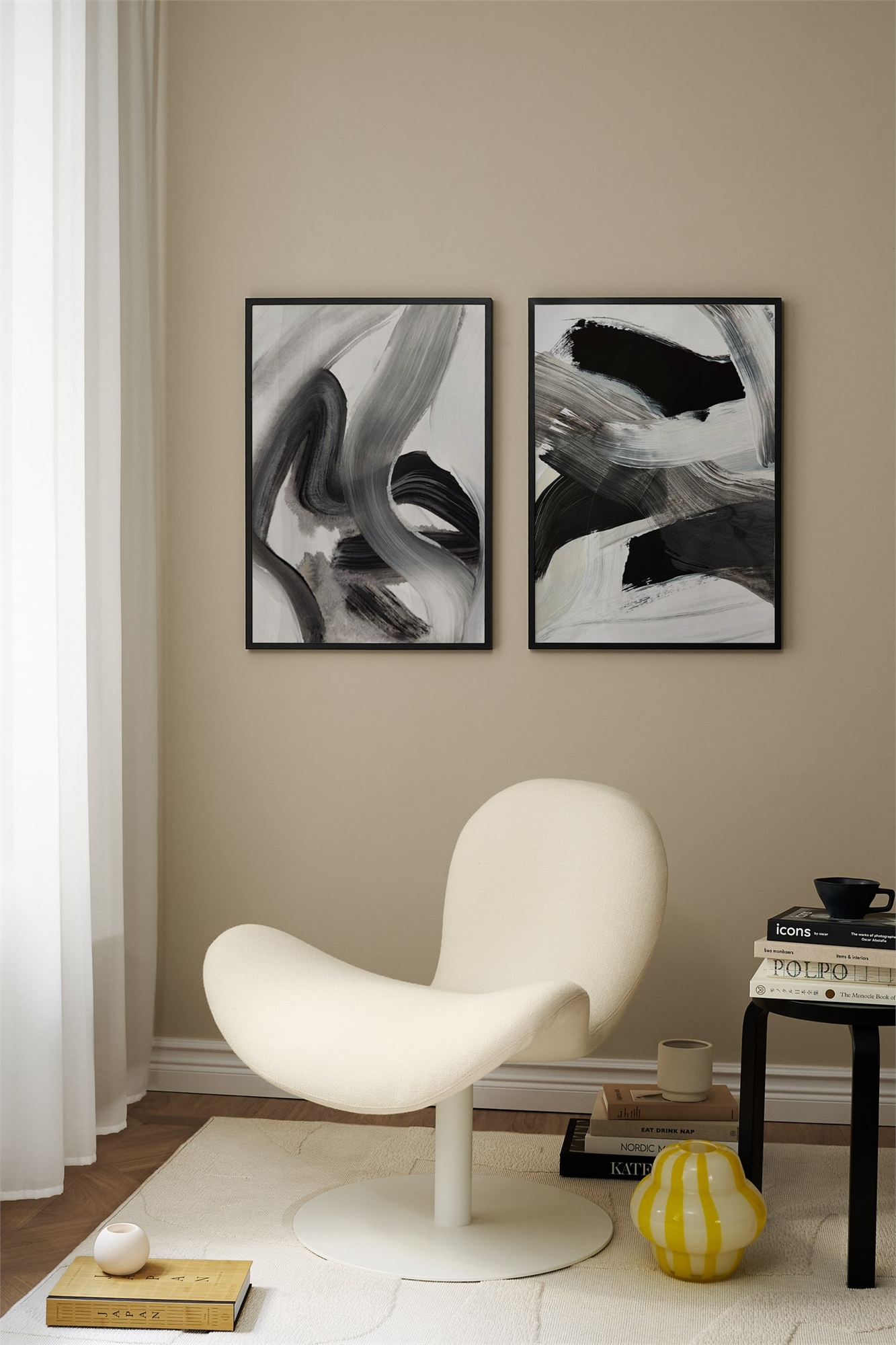В набор входят два постера и две подходящие черные рамки размером 50x70 см. Украсьте каждый постер по отдельности или вместе в галерее.