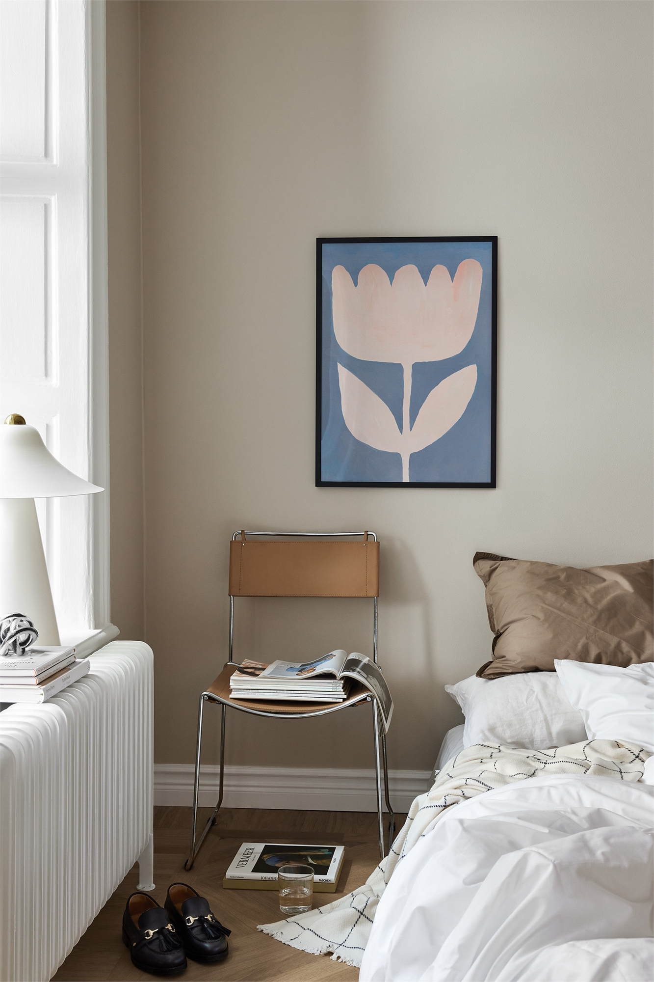 Мотив с ручной росписью, изображающий бежевый тюльпан на синем фоне. Мотив входит в коллекцию "Ателье № 03", созданную нашими дизайнерами для Postery Atelier.
