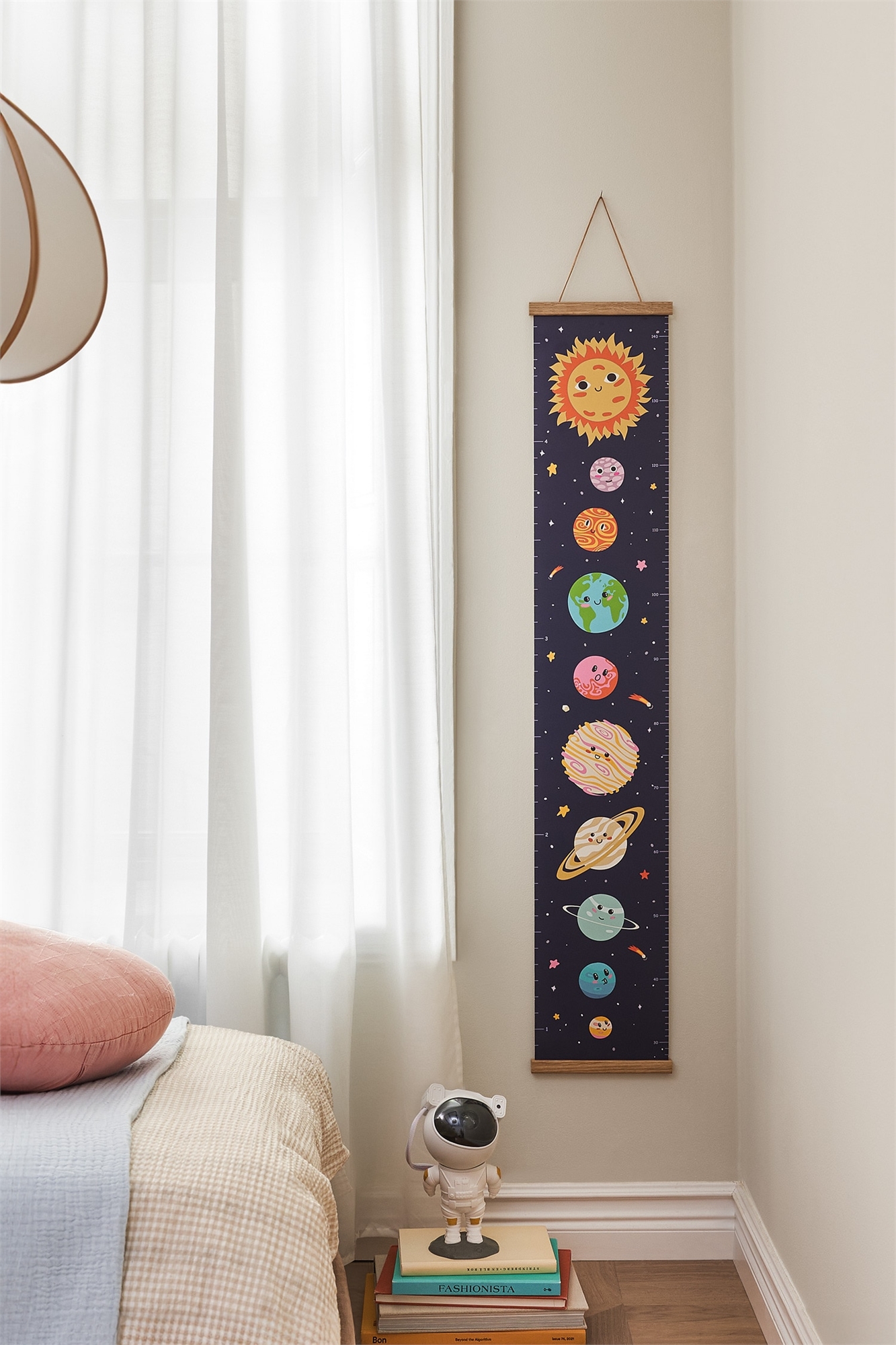 Наблюдайте, как растет ваш ребенок с нашей уникальной и очаровательной измерительной палочкой. На этой измерительной палке изображены планеты нашей Солнечной системы. Вы можете добавлять свои собственные заметки и ставить цели по мере роста вашего ребенка. Измерительная палочка имеет размер 118 × 21 см и варьируется от 30 до 140 см - просто подвесьте ее на высоте 30 см от пола. В комплект входит соответствующая дубовая доска для плакатов размером 22 см.