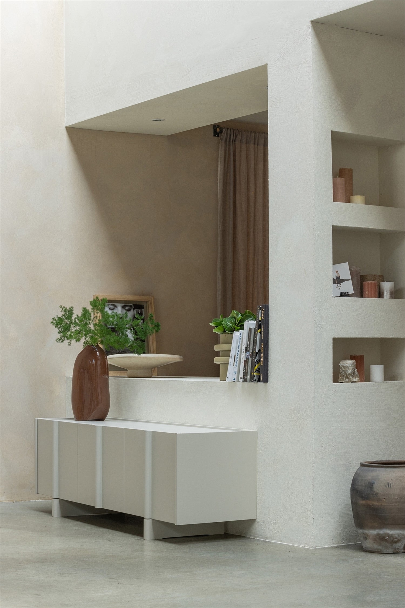 Добавьте стильный и уникальный акцент в свой интерьер с помощью шкафа из серии Basu от голландского бренда WOOOD. Входящий в коллекцию Exclusive, этот шкаф впечатляет игривыми линиями, матовыми натуральными цветами и неподвластным времени скандинавским дизайном. Изготовлен из сертифицированной FSC древесины сосны и отделан бетонной столешницей. Лак на водной основе защищает древесину и облегчает ее чистку. С тремя отделениями и дверцами, грузоподъемность 35 кг сверху, 15 кг на отделение. Поставляется в двух упаковках, простая сборка. Всегда тщательно закрепляйте устройство против опрокидывания.