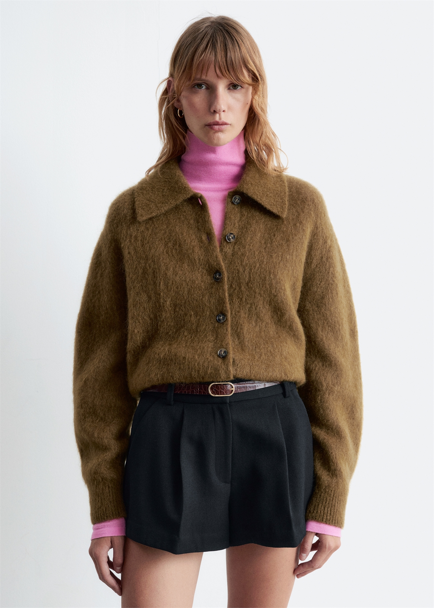 Эти шорты изготовлены из смеси шерсти. Они имеют А-образный силуэт, высокую талию и четкие заутюженные складки, что придает им индивидуальный вид. Задние карманы с двойными прорезями, застежка-молния с крючком и шнурком. Косые карманы. Шлевки для ремня. Длина по внутреннему шву: 9,5 см / 3,7" (EU 36 / UK 8 / US 4)