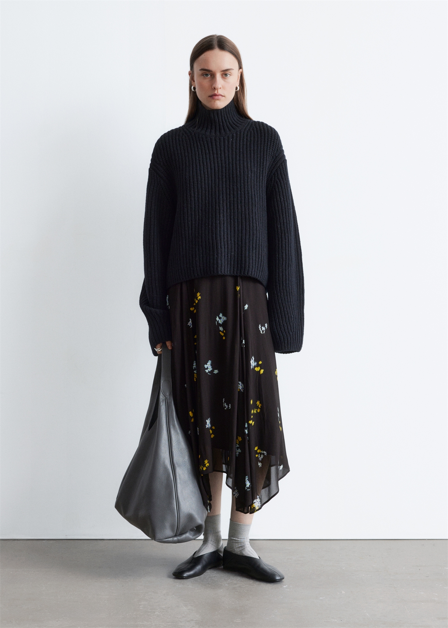 Эта юбка-миди из шифона имеет струящийся силуэт с асимметричной линией подола и тонкими панелями, создающими движение. Застегивается на потайную молнию сбоку. Полностью на подкладке Длина юбки: 72 см / 28,3" (EU 36 / UK 8 / US 4)