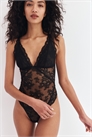 Кружевное боди без бретелей с V-образным вырезом, регулируемыми бретелями и чашками с сетчатой подкладкой, которые придают бюсту естественную форму и обеспечивают легкую поддержку, а также застежкой на крючки сзади. Ластовица на подкладке с потайными кнопками и высоким разрезом сзади.